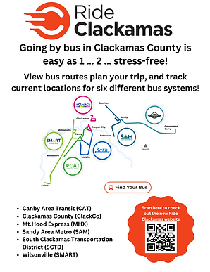 Visit www.rideclackamas.org for all the Clackamas County providers information and trip planning software